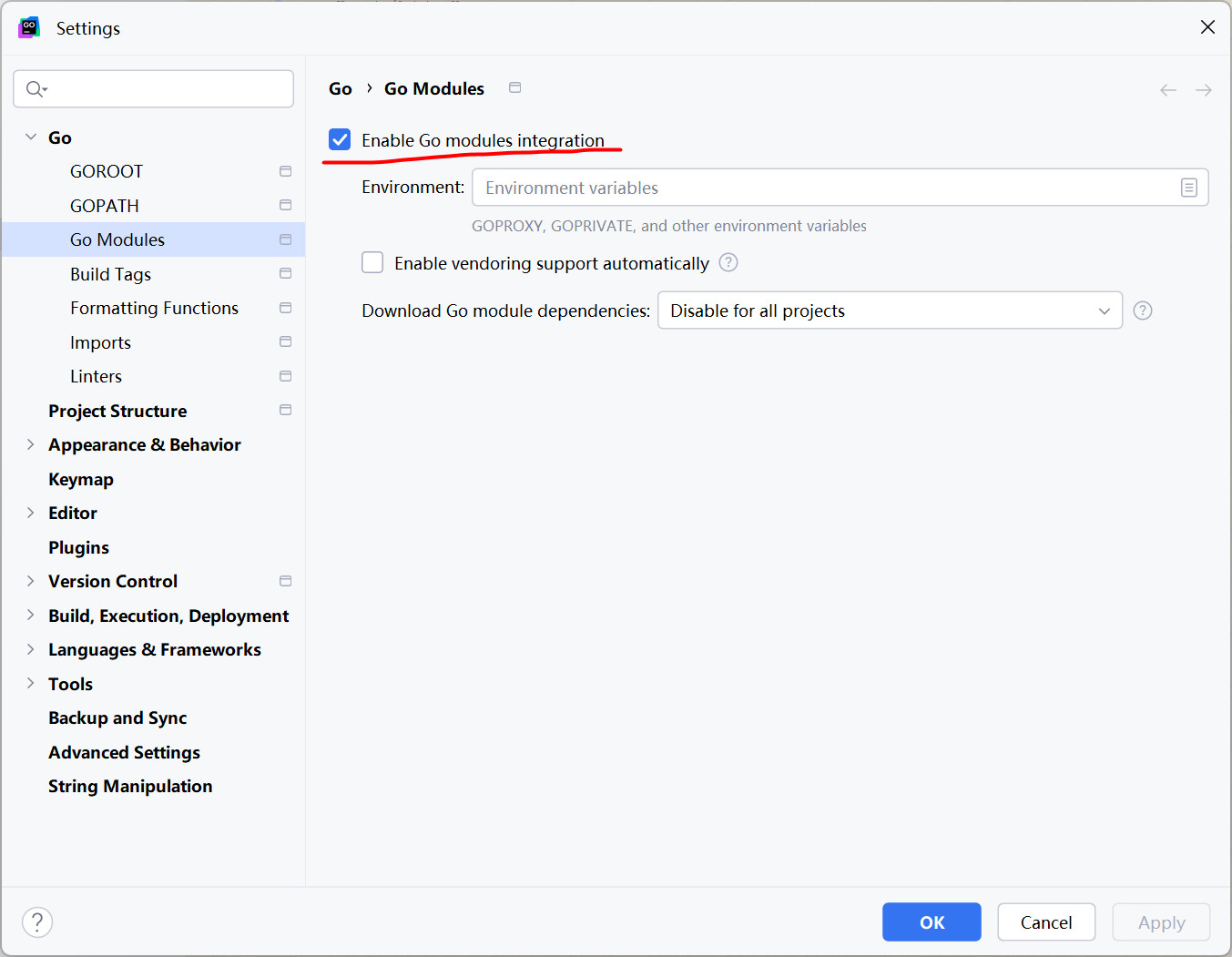 The culprit? Head to Settings > Go > Go Modules, and tick the “Enable Go modules integration” box.